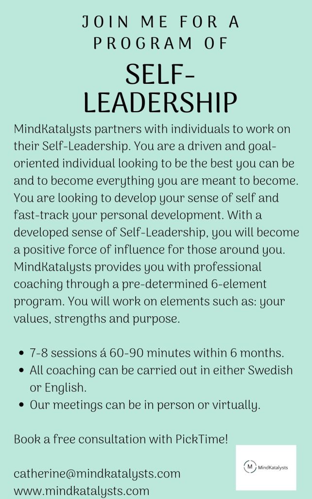 The benefits of #selfleadership are many. Everything from increased self-awareness to knowing what your personal purpose is. In my observation, this is key to achieving your own goals and making significant progress in your personal development. Sound interesting? Contact me today for a free 30-min consultation to learn more. Looking forward!